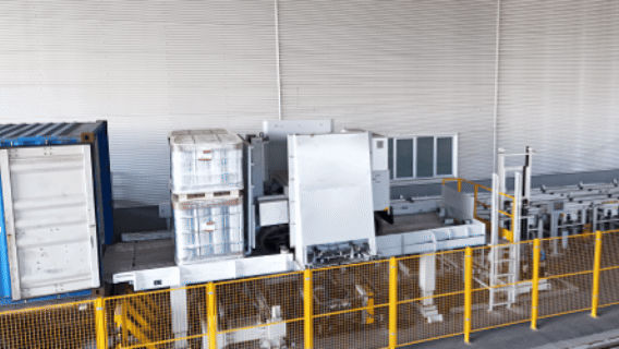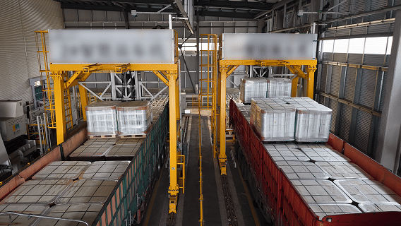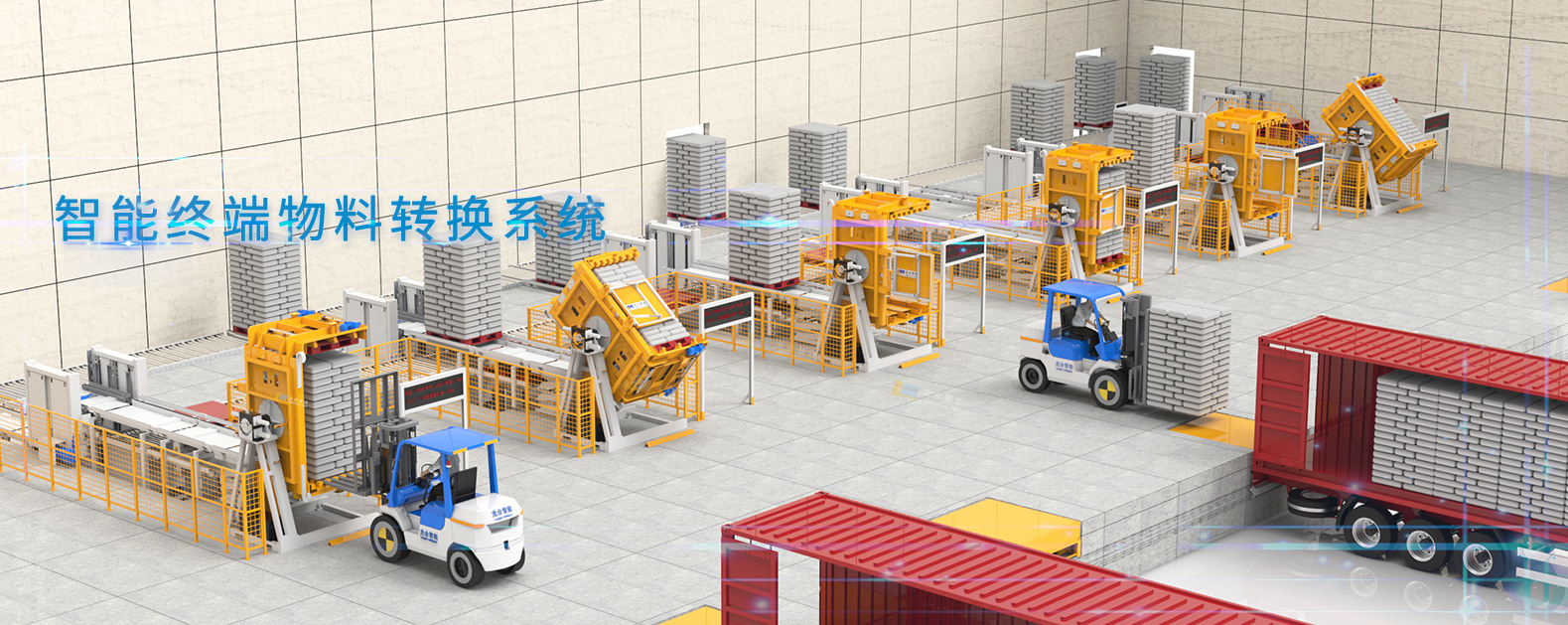 終端物料轉換系統深度融合智能屬具與智庫設備技術,打造垛裝貨物從出庫至裝車的全流程無人化發貨解決方案。